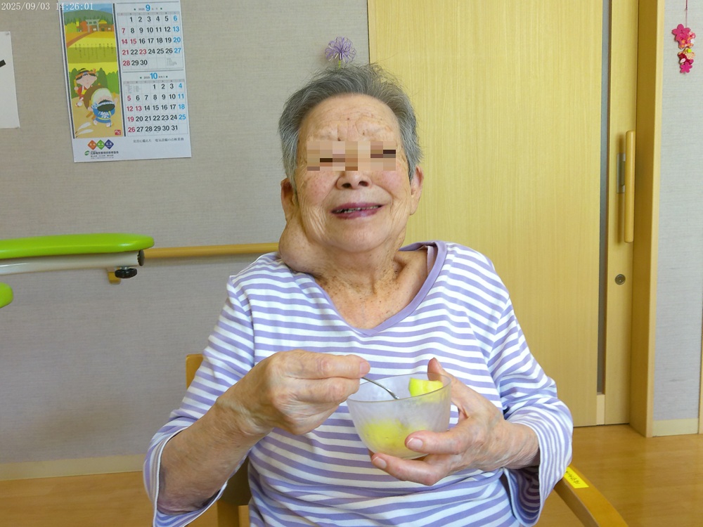 おやつにメロンをいただきました。 甘いメロンに笑顔がこぼれました。