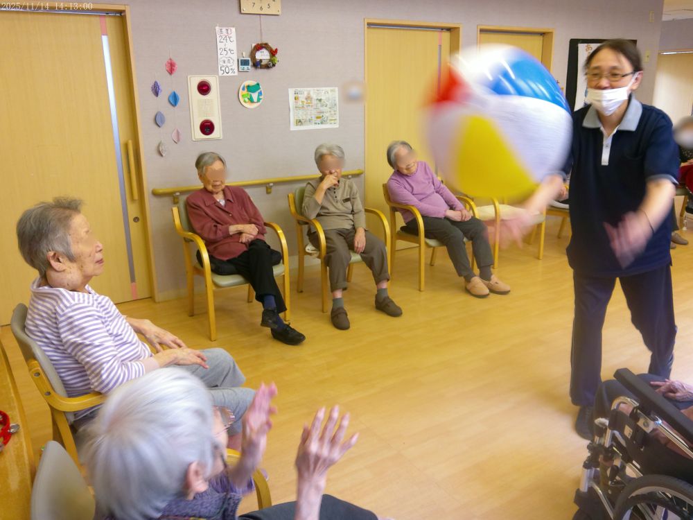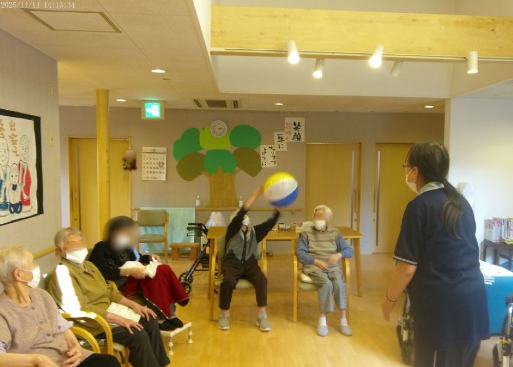 キャッチボール グループホーム暁 2025.11.14 ビーチボールでキャッチボールを楽しみました。 大きなボールを投げたり受け取ったりしながら、体を動かし、笑い声あふれる楽しい時間を過ごしました。 共有: