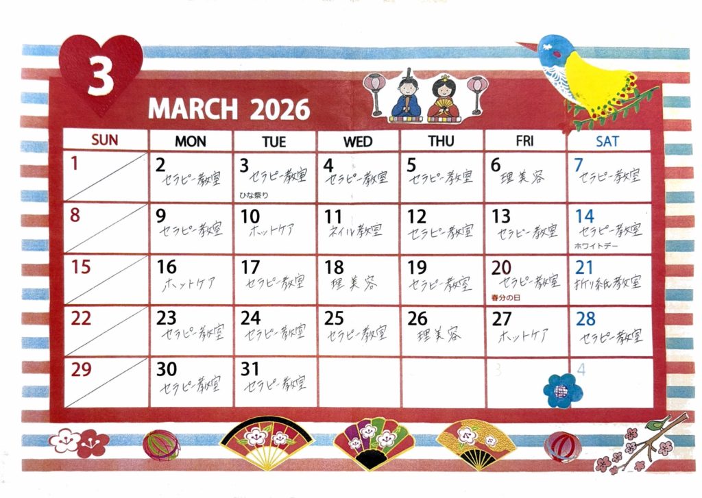 3月の予定は、以下の通りです。